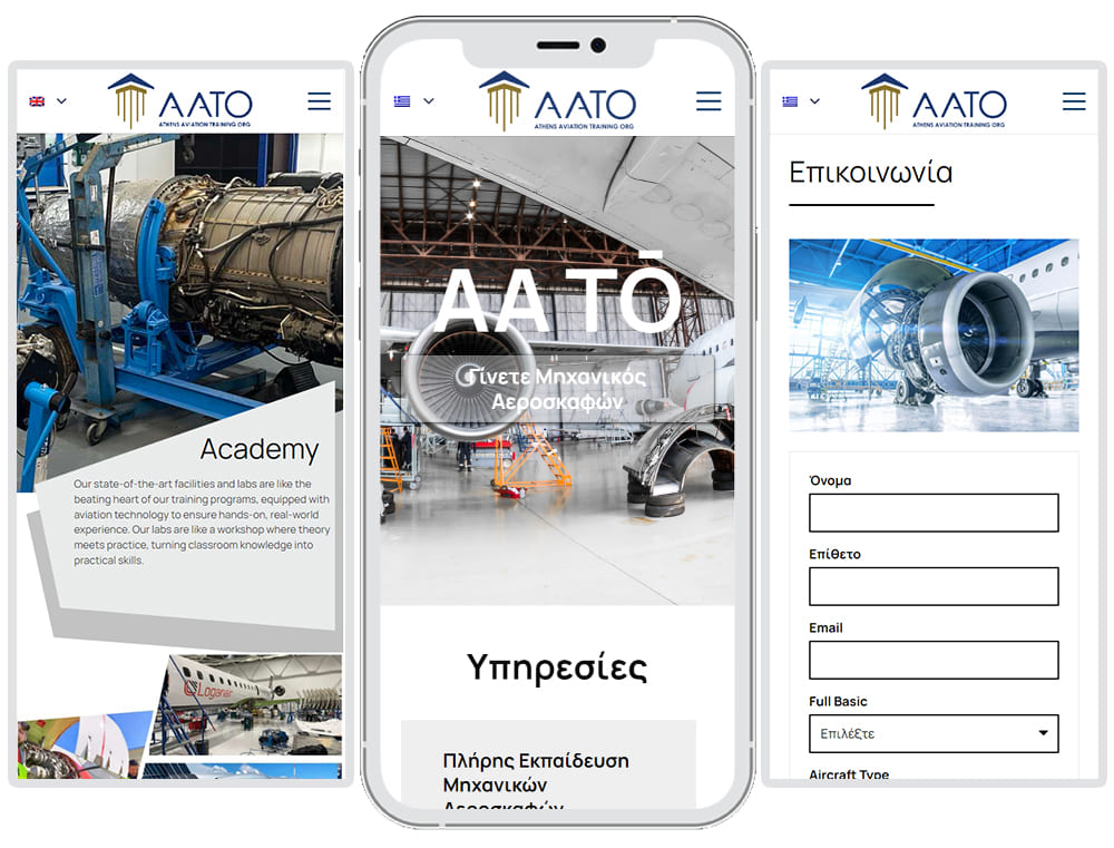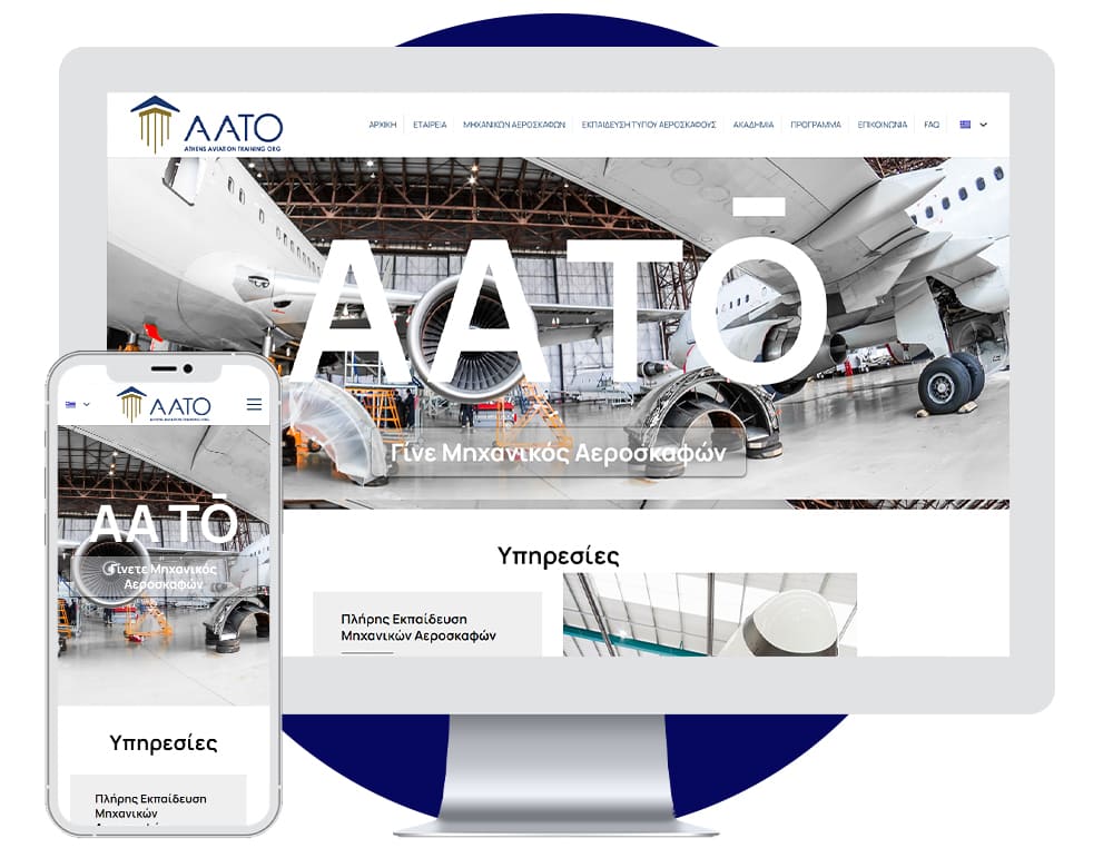 Κατασκευή εταιρικής ιστοσελίδας για την Athens Aviation Training Org. Σύγχρονη εξατομικευμένη σχεδίαση με animated hero.