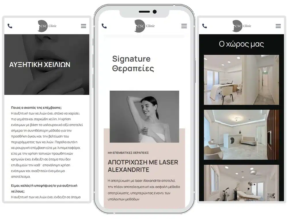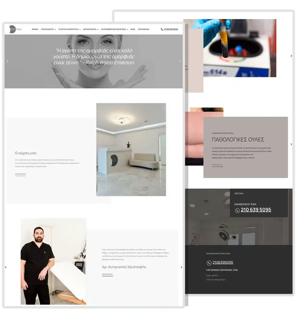 Κατασκευή σύγχρονης εταιρικής ιστοσελίδας με μινιμαλ & απόλυτα custom design για την CSC Clinic.