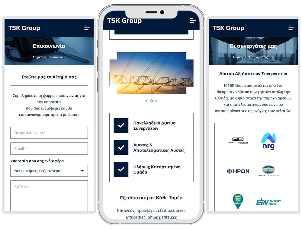 Η ιστοσελίδα tsk.gr είναι πλήρως responsive, προσφέροντας ομαλή και ευχάριστη εμπειρία πλοήγησης σε κάθε συσκευή. Το minimal layout και οι μπλε αποχρώσεις παραμένουν καθαρά και ευδιάκριτα, είτε ο χρήστης περιηγείται από υπολογιστή είτε από κινητό ή tablet.